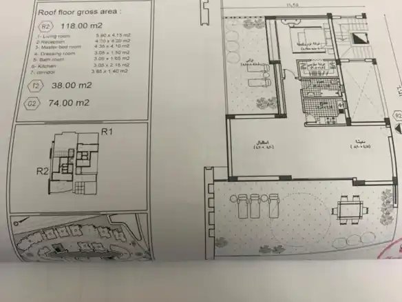 و الباقى مساحة مفتوحة بكامل مسطح الروف